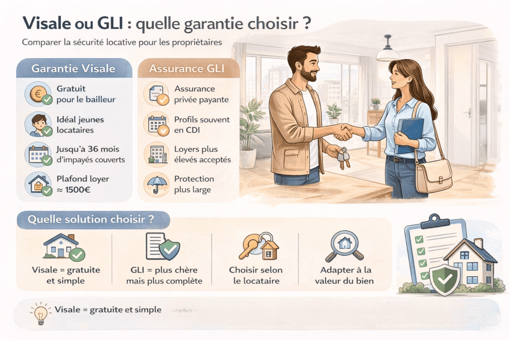 Visale est parfaite pour les petites surfaces et les jeunes. La GLI convient mieux au patrimoine haut de gamme. Elle sécurise les revenus de manière plus étendue.